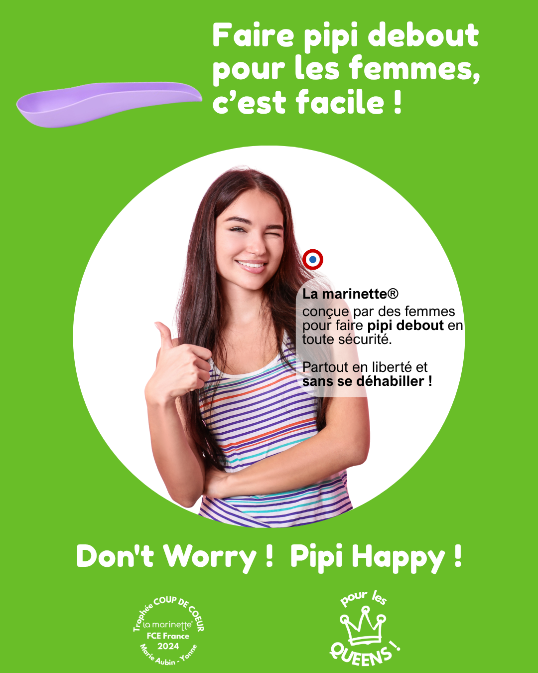 Fini de se retenir ! Tu peux maintenant affronter les toilettes dégueulasses sans te priver. La marinette®, c’est la liberté de faire pipi joyeusement, n’importe où. Une fois que tu l’as essayée, tu la l'emmèneras partout.